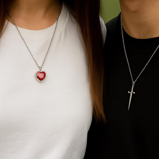 Beautifull Heart Sward Couple Necklace